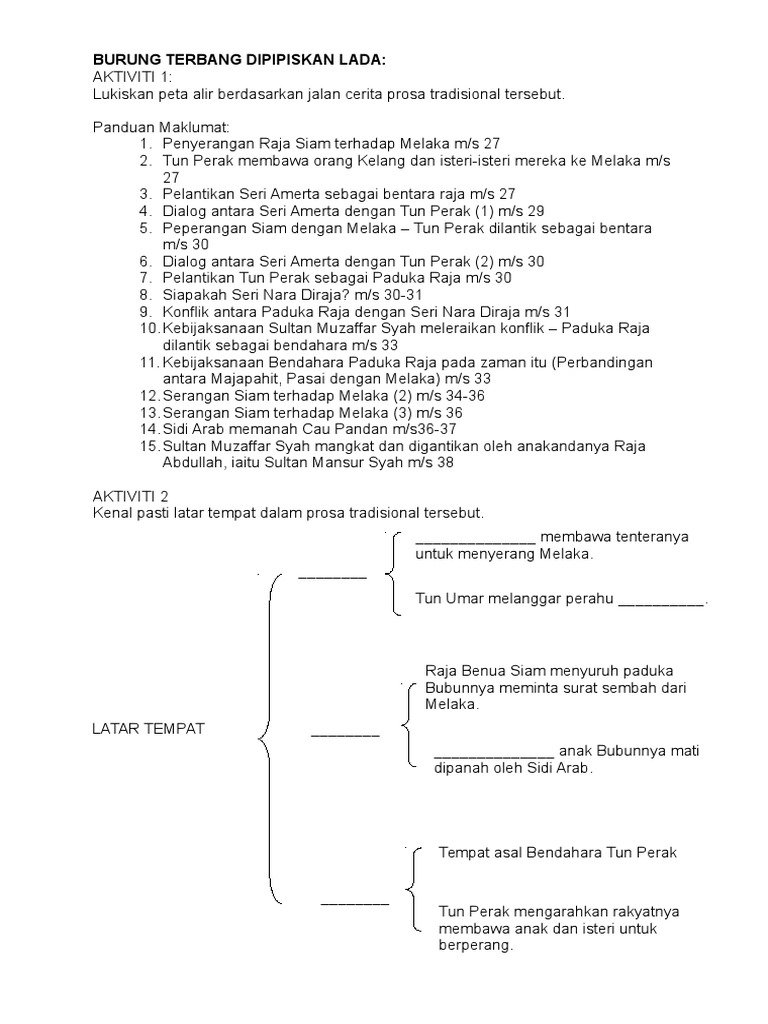 Cahaya api itu kelihatan seolah olah terlalu ramai tentera melaka sedang. 2 markah ii apakah reaksi raja benua siam setelah baginda dimaklumkan bahawa sultan muzaffar syah tidak mahu tunduk kepada baginda. Telah bertemu dengan perahu siam yang banyak itu maka dilanggarnya sekali dua tiga buah perahu siam alah lalu ia terus ke sebelah maka ia berbalik dilanggarnya pula yang lain itupun dua tiga buah perahu siam alah. Dipetik daripada burung terbang dipipiskan lada antologi sejadah rindu dewan bahasa dan pustaka i berikan maksud rangkai kata menyampaikan titah raja.