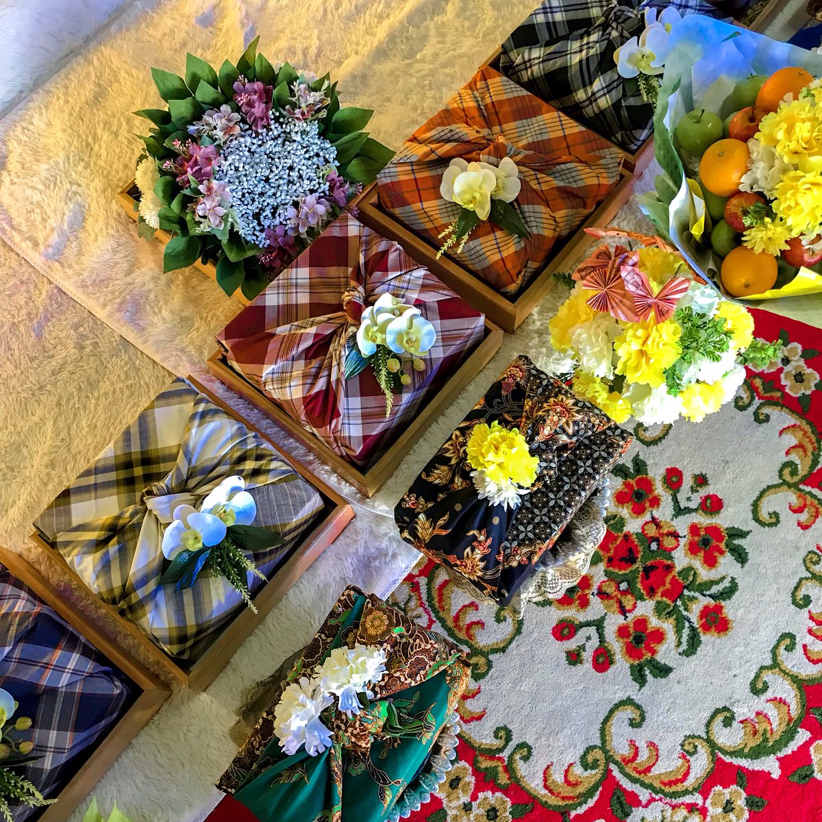 Cara membuat gubahan hantaran kain batik. Ini merupakan pilihan hantaran pihak lelaki kepada pihak perempuan. 5 gubahan bunga guna kertas. Bagi yang sedang mencari tutorial gubahan kain pasang bolehlah rujuk dalam artikel ni. 1 kain batik 2 dawai untuk kelopak bunga 3 getah untuk mengikat setiap kelopak bunga 4 sapu tangan di masukkan kertas 5 jarum berkepala untuk hias tengah bunga 6 rantai mutiara untuk hias di keliling bunga 7 bakul gam uhu 8 bunga2 kecil sebagai penyeri.