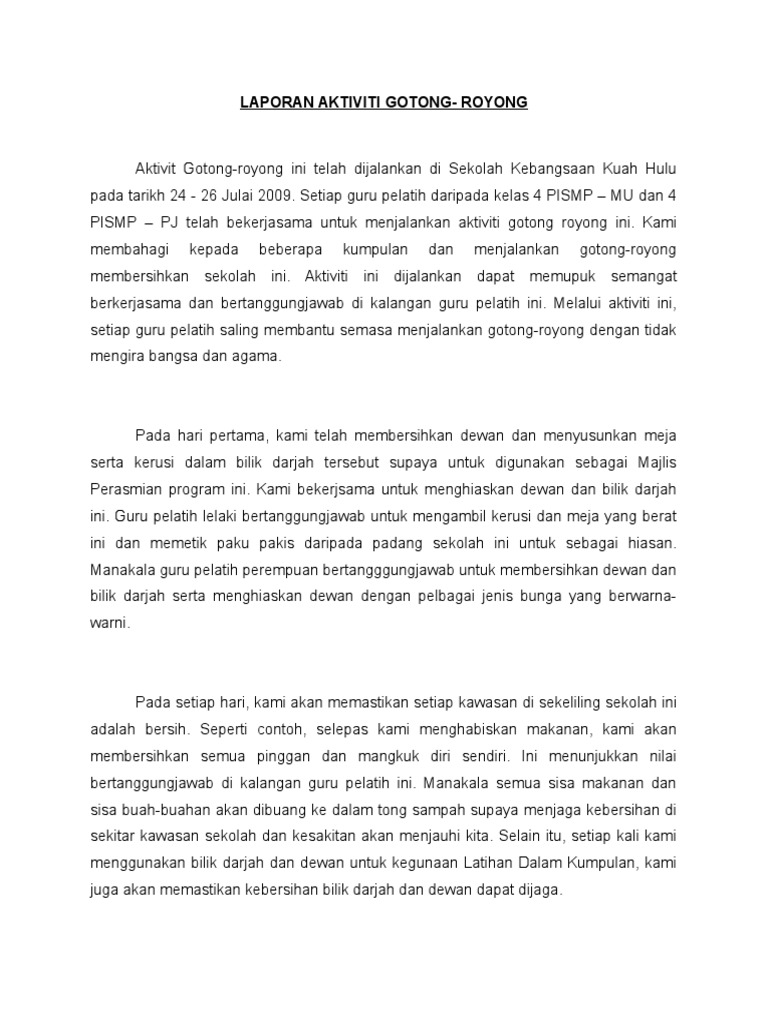 Karangan Tentang Aktiviti Gotong Royong Di Sekolah