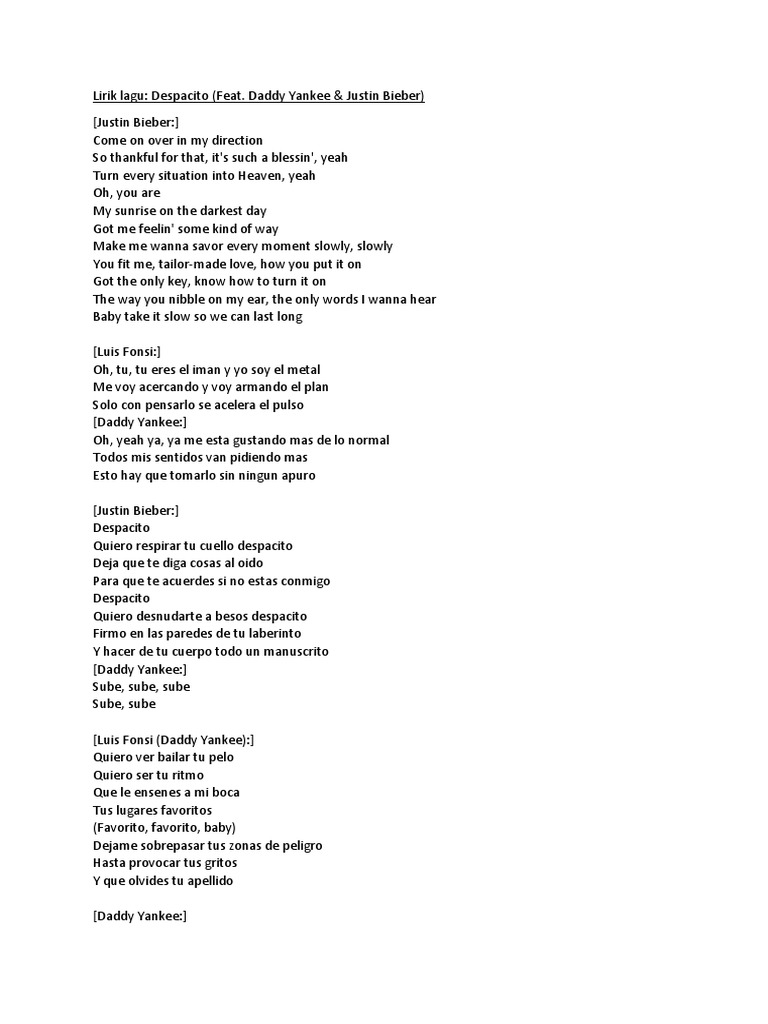 Lirik Lagu Despacito Terjemahan Dalam Bahasa Melayu All About Shoes