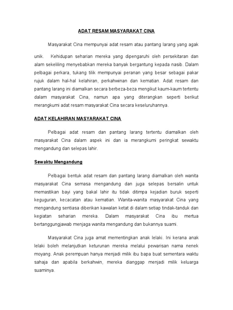 Adat Resam Dan Pantang Larang Masyarakat Cina