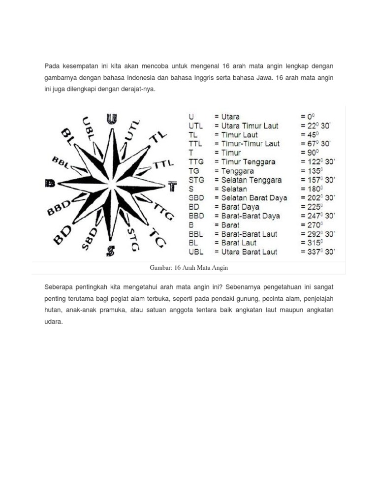 16 Arah Mata Angin Dalam Bahasa Inggris Dan Artinya